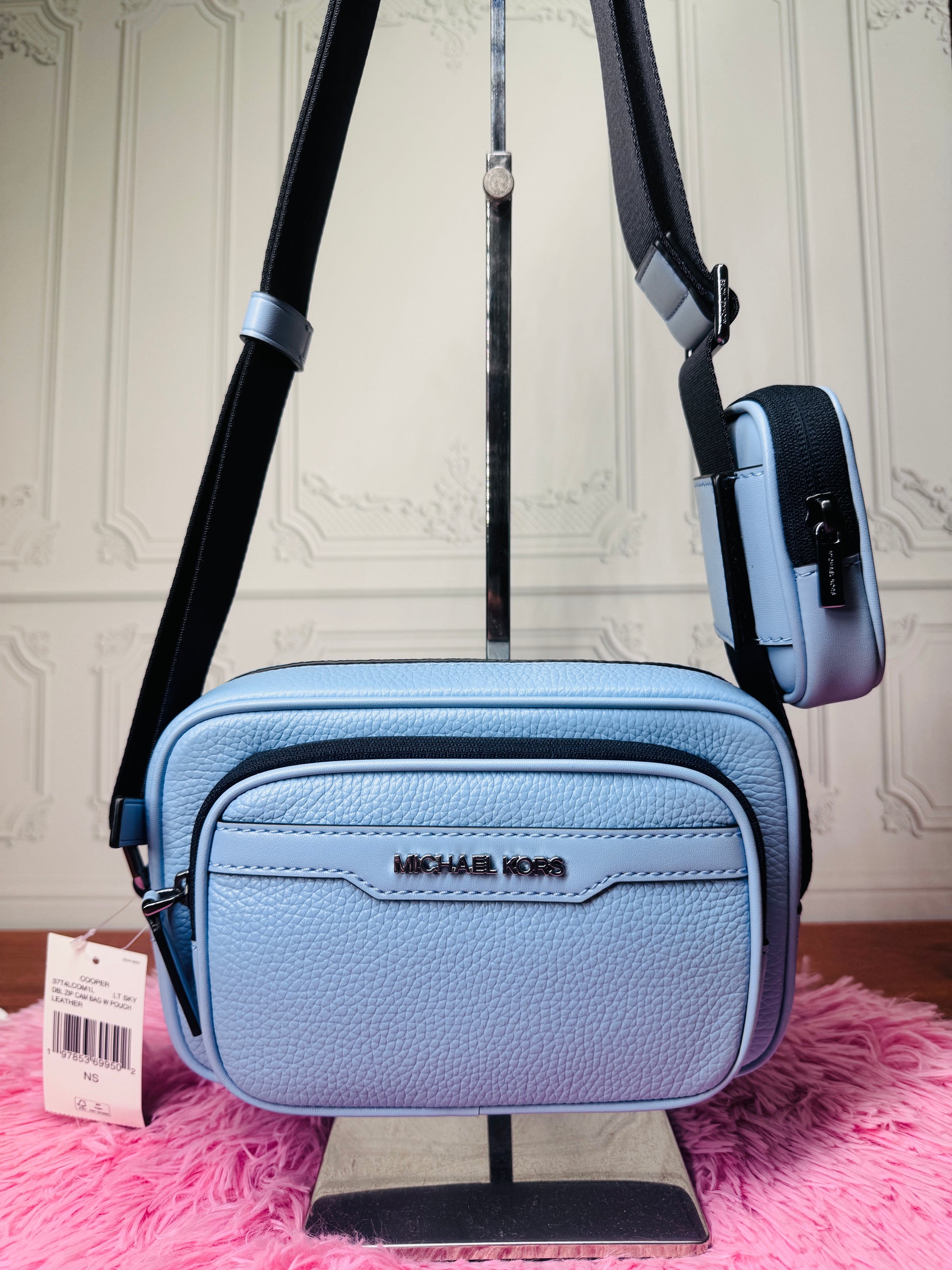 Bandolera Michael Kors mediana para caballero color celeste.