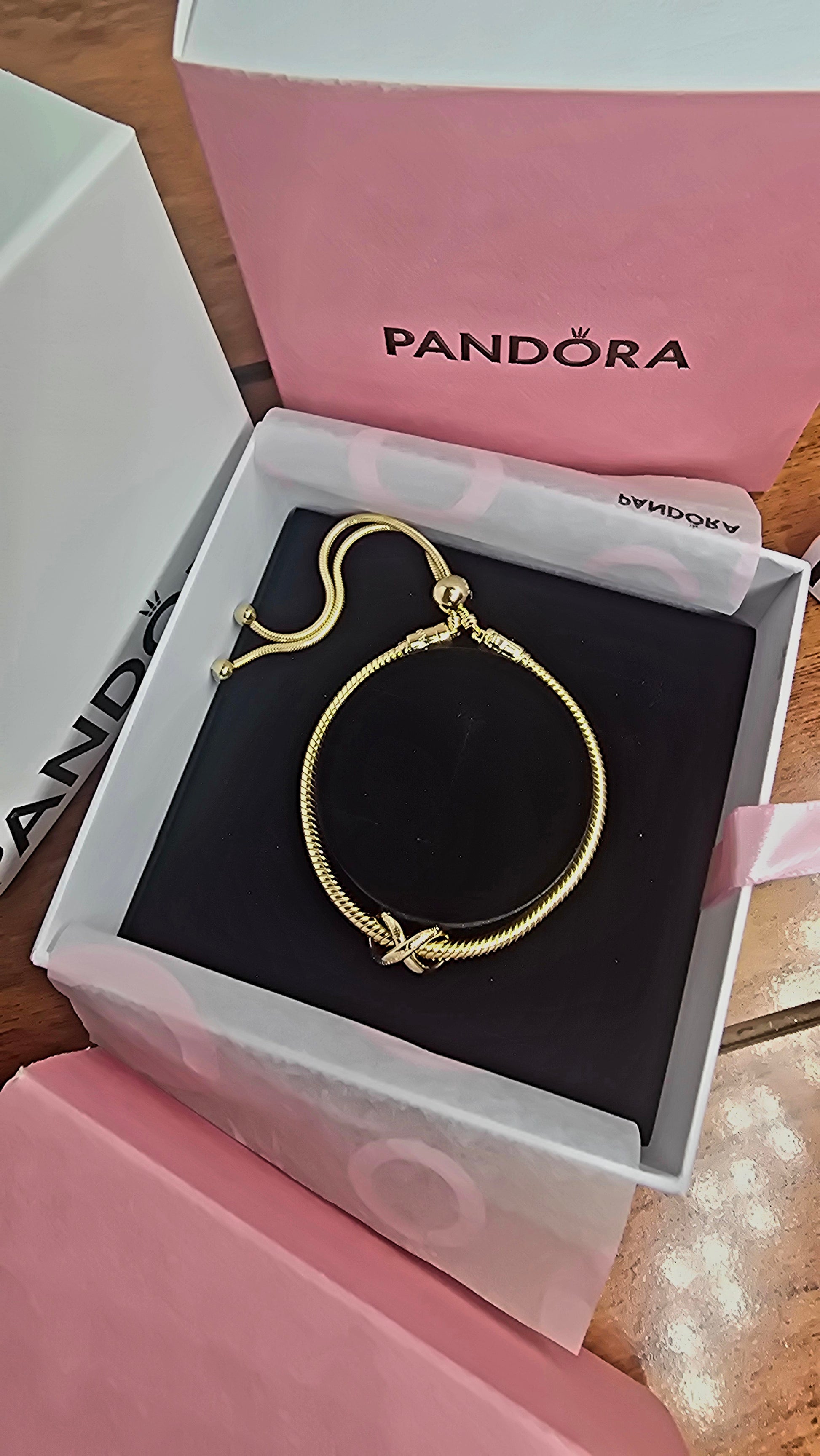 Brazalete ajustable chapado en oro de 14K con dije grabado ''Forever & Always''.